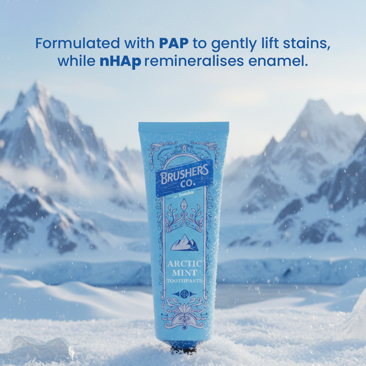 A colour-changing toothpaste powered by PAP for whitening, nHAP for strength and ice-cold mint energy.